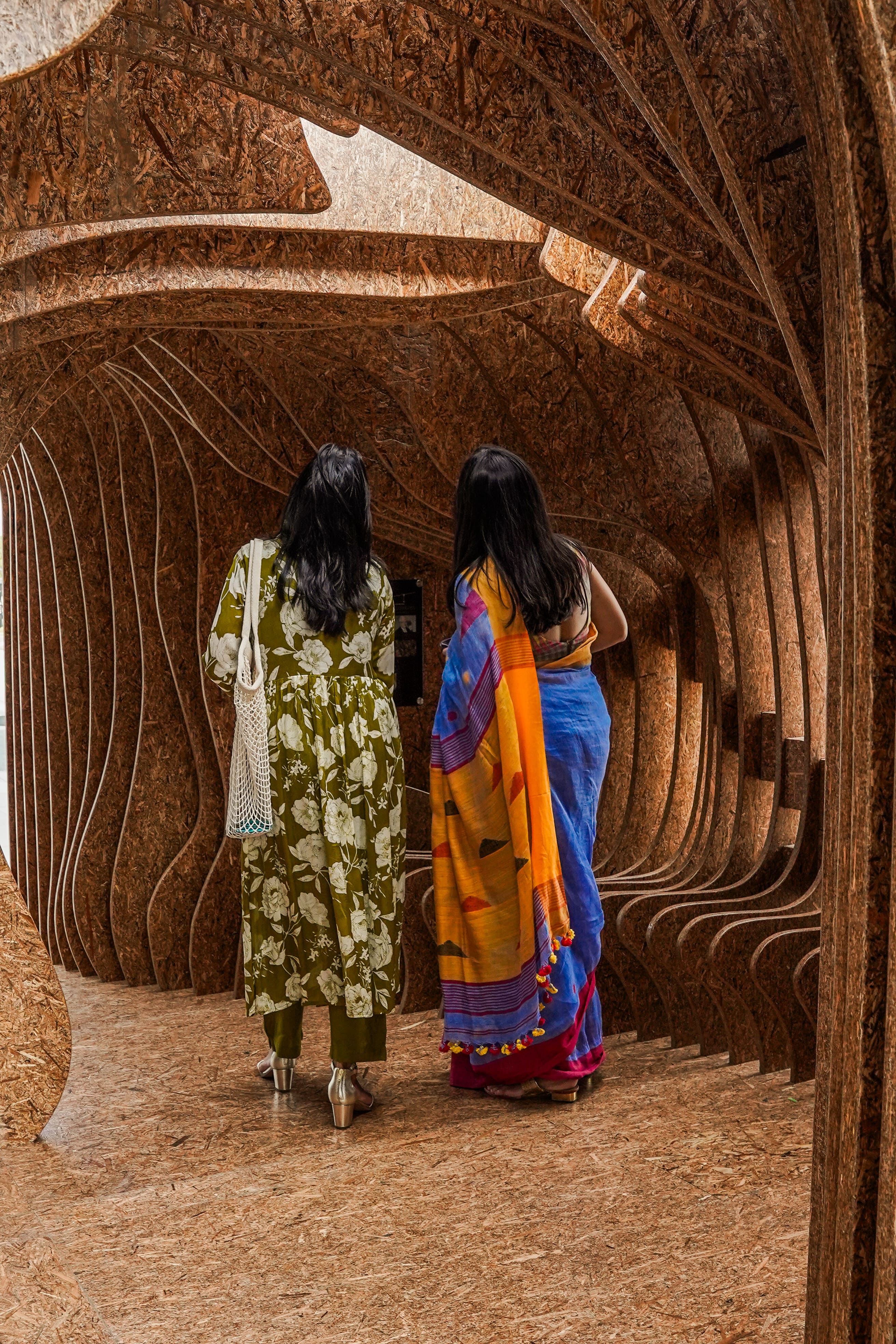 The design created an immersive, wood-centric spatial experience defined by organic, flowing curves and complex, non-linear forms. Voids were strategically integrated into the structure, allowing light and shadow to animate the installation and encouraging visitors to move through and engage with the space.