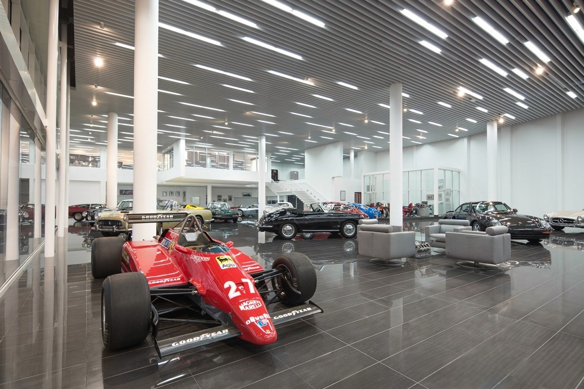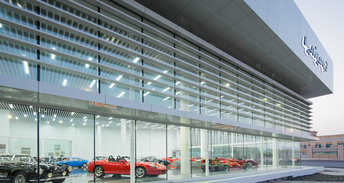 The building is organised to maximise visibility of the vehicles while maintaining a restrained architectural language. Simple, clean lines allow the curves and detailing of the automobiles to stand out without visual competition from the surrounding structure.
